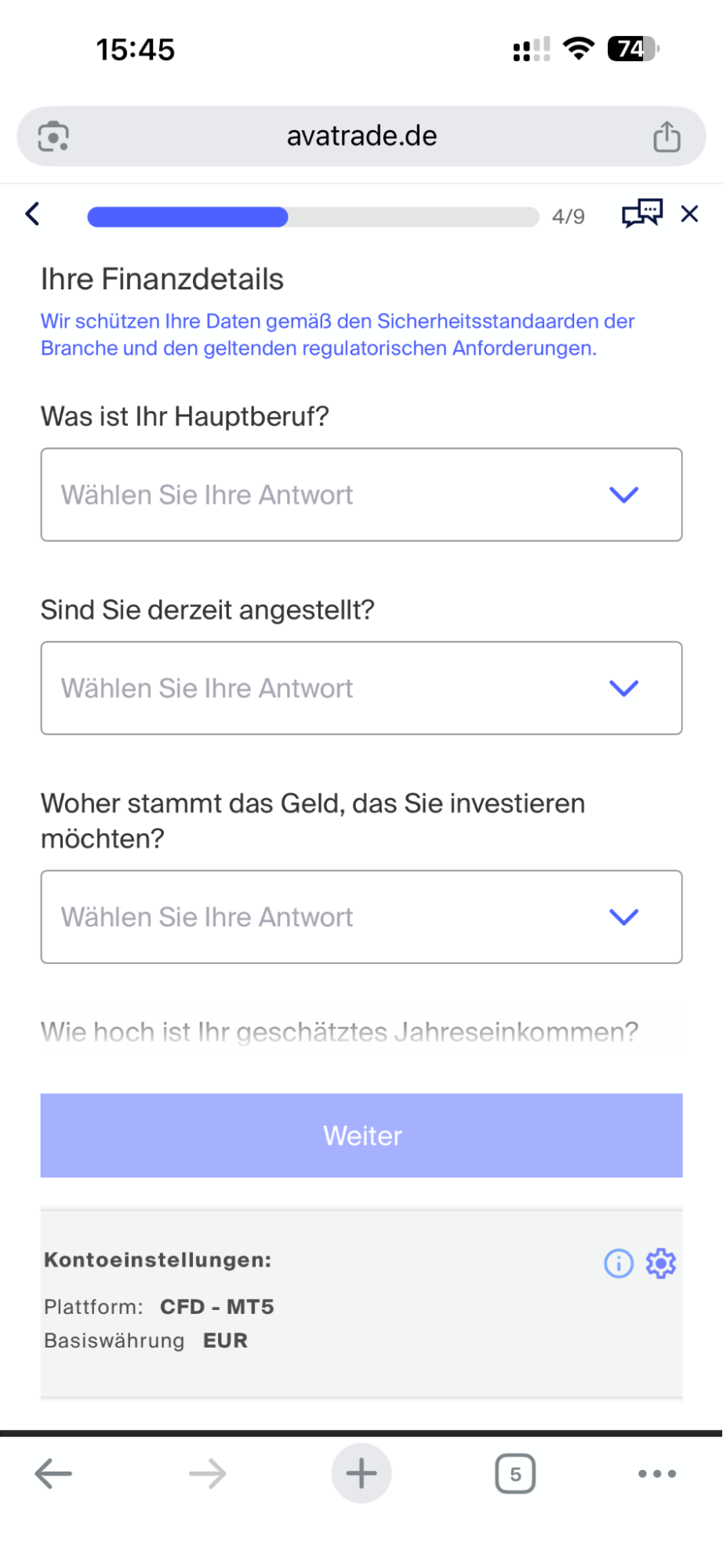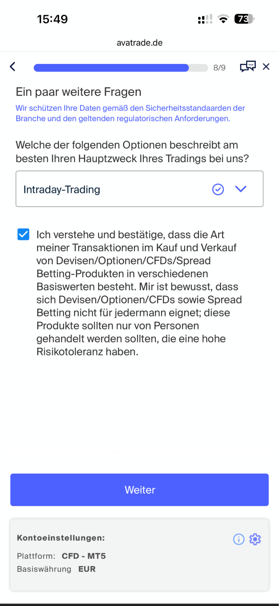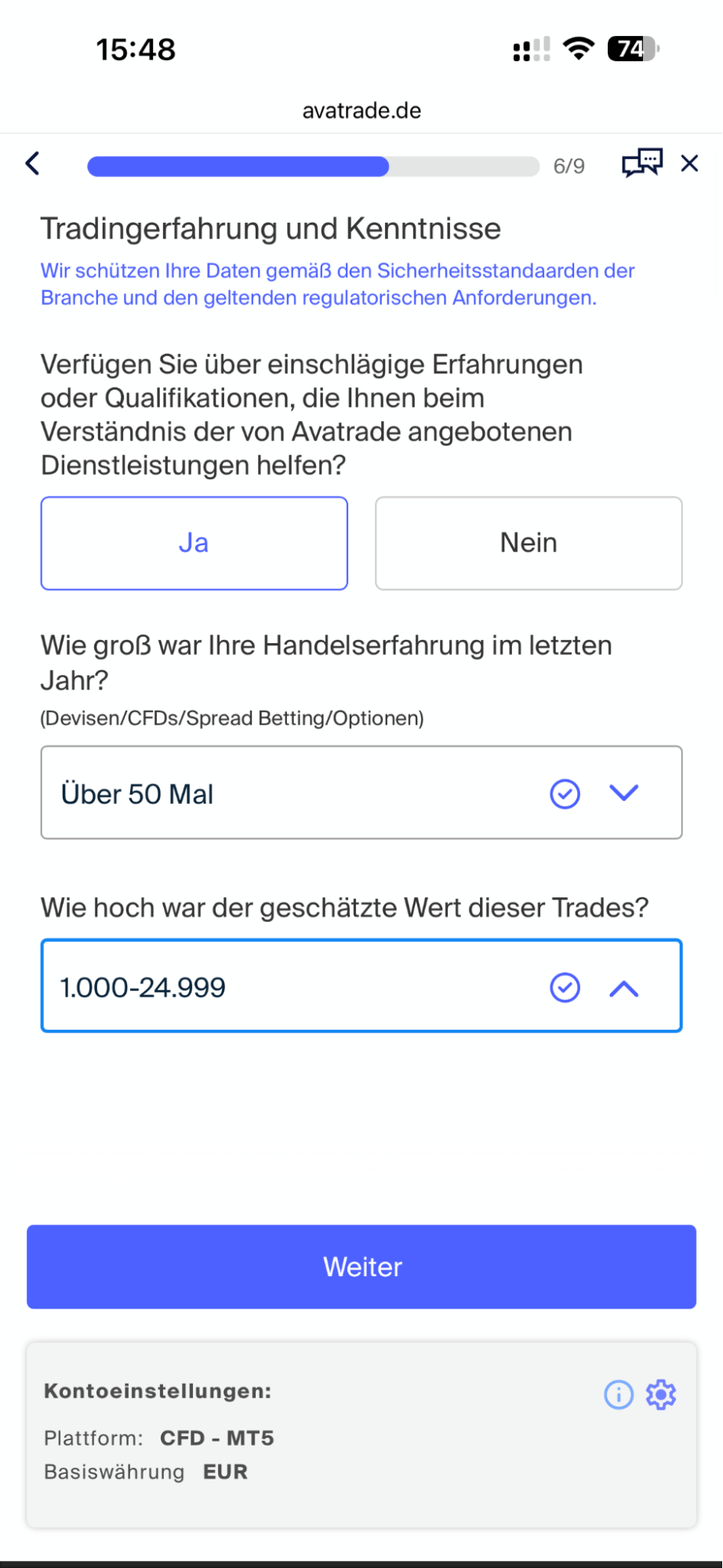 Schritt-für-Schritt-Anleitung (mit Screenshots) zur Kontoeröffnung bei AvaTrade – Smartphone und Desktop.