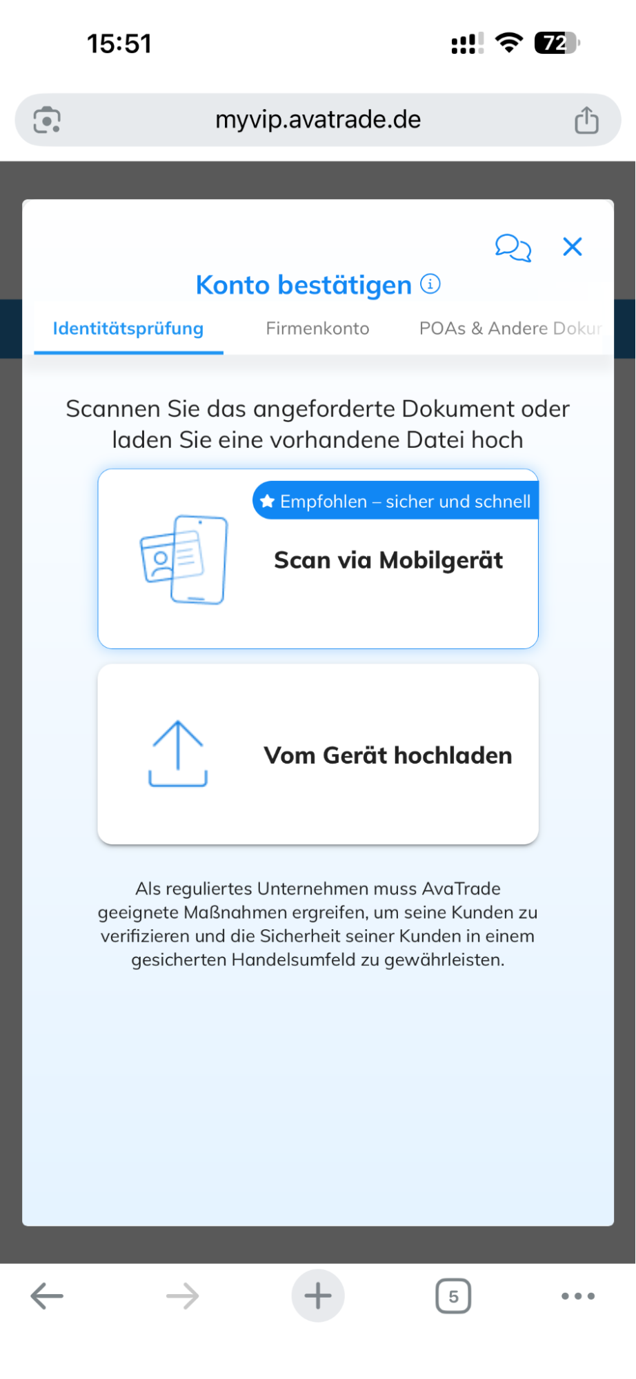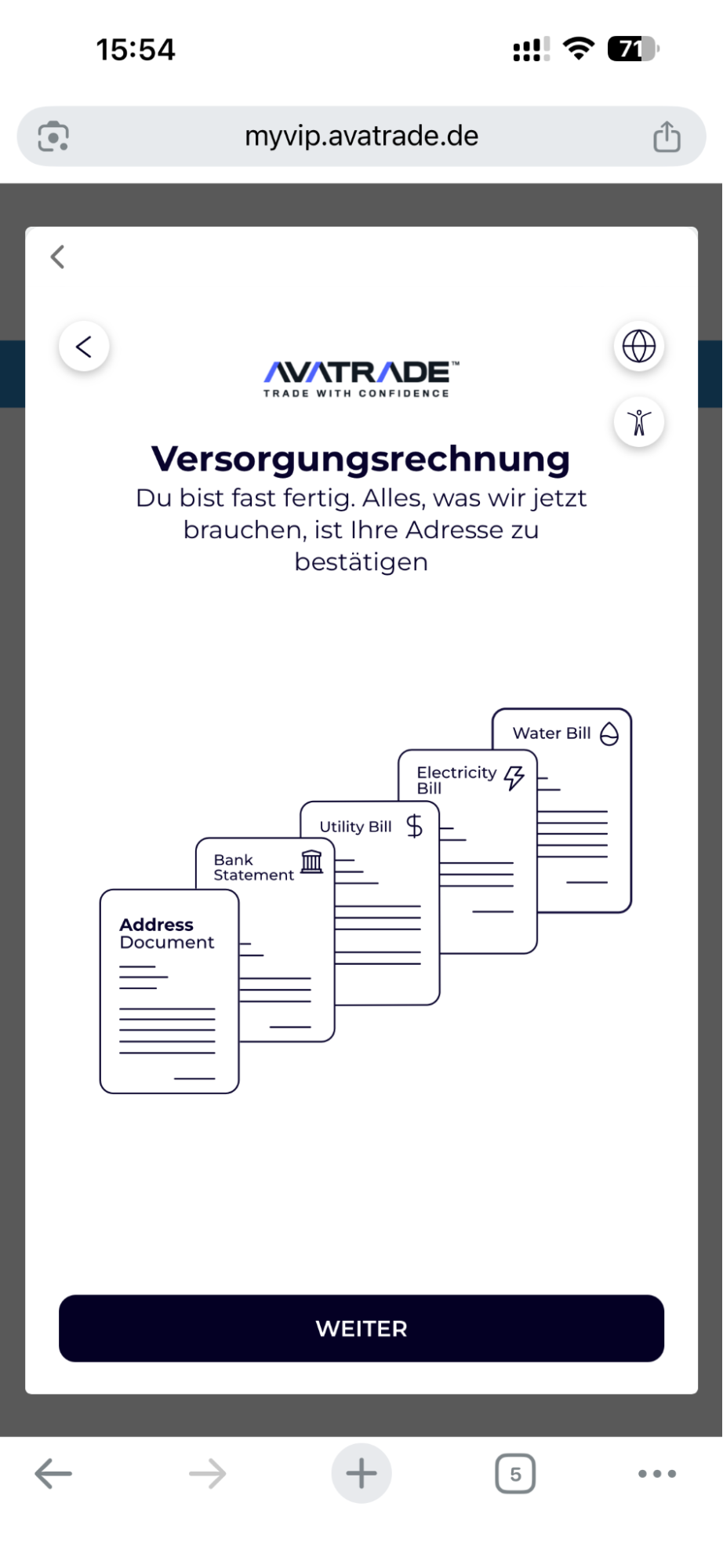 Schritt-für-Schritt-Anleitung (mit Screenshots) zur Verifizierung deines AvaTrade-Kontos – Mobile.